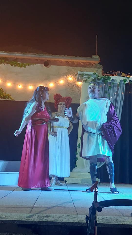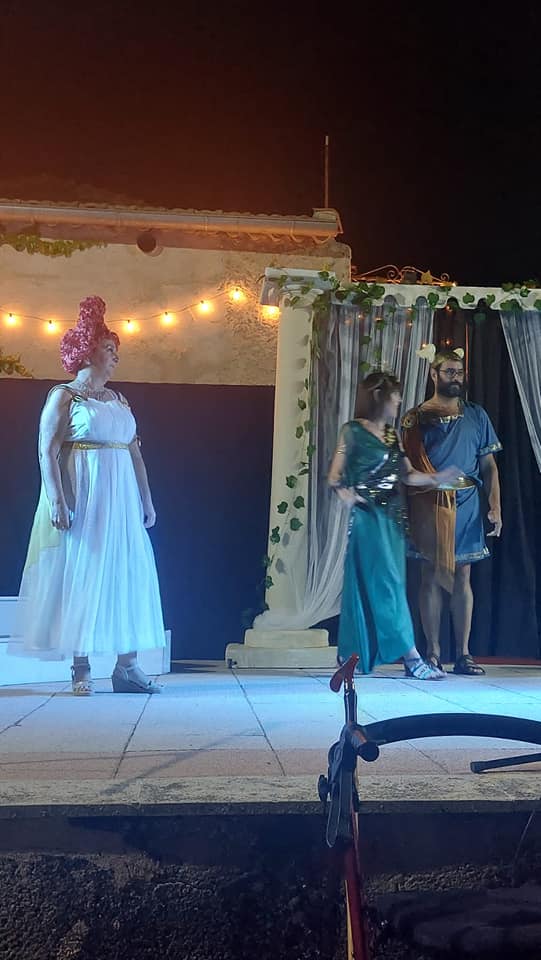 Y, la otra ha consistido en el estreno de la obra de teatro LOS PELÓPIDAS por el grupo de teatro de Otones, Teatrones, en el marco incomparable del espacio escénico abierto de Las Cañas de Otones. Dos funciones, viernes y domingo, para poder atender toda la demanda de entradas generada. Su adaptador y director ha sido Carlos Palacios.