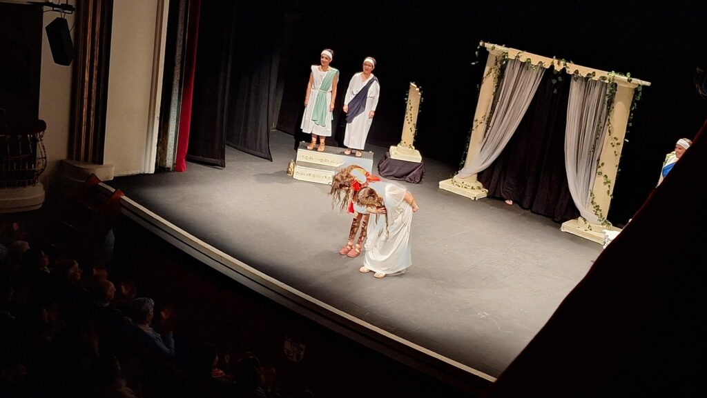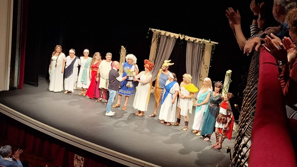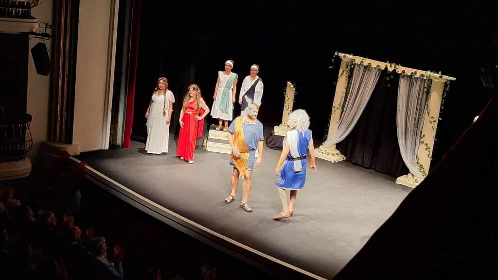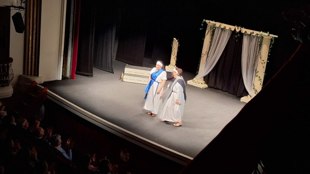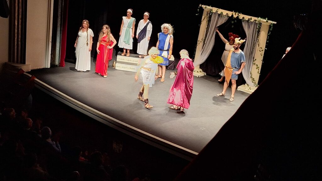 La obra representada ha sido Los Pelópidas, de Jorge Llopis, una caricatura muy divertida de las tragedias griegas. Ha sido adaptada y dirigida por Carlos Palacios.
