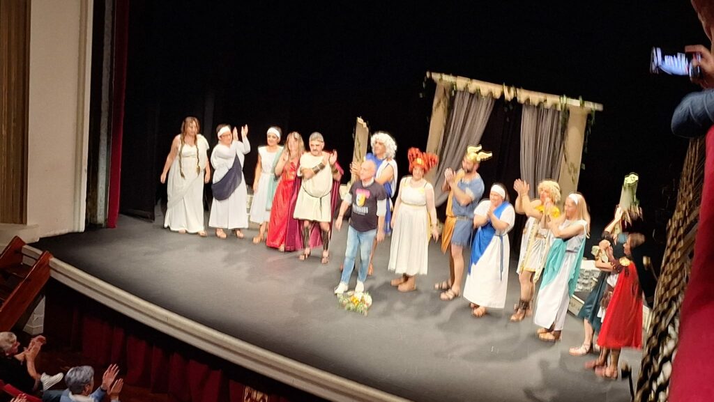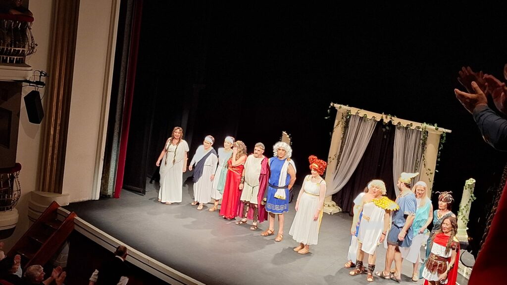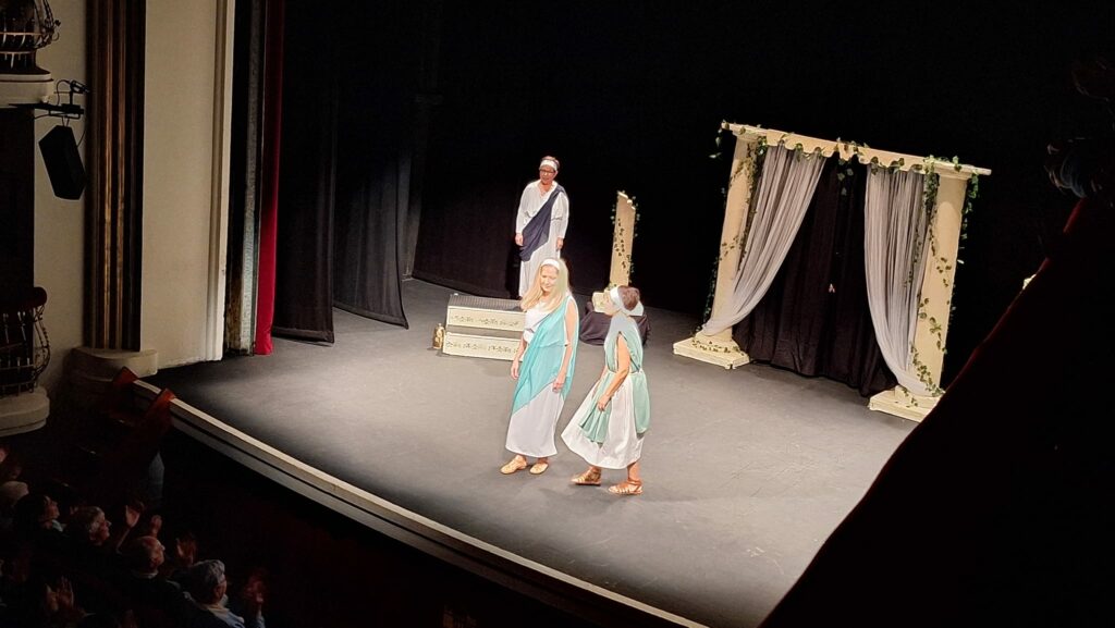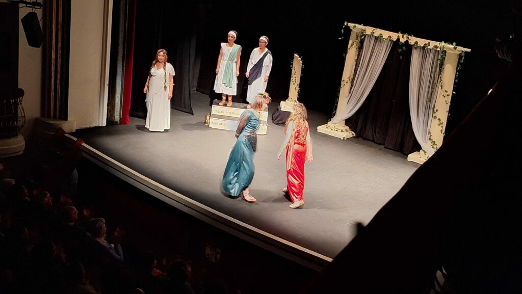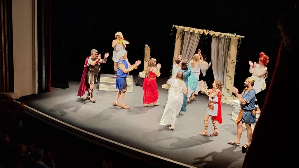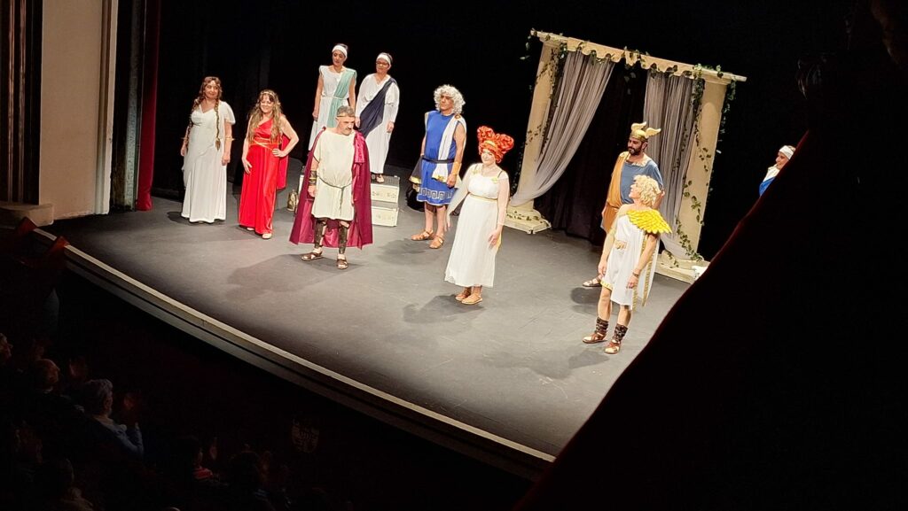 La obra representada ha sido Los Pelópidas, de Jorge Llopis, una caricatura muy divertida de las tragedias griegas. Ha sido adaptada y dirigida por Carlos Palacios.